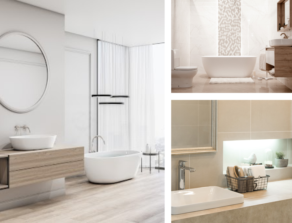 Install quartz countertops, known for their aesthetic appeal, durability, and low maintenance, to elevate the kitchen’s functionality and style. In bathrooms, create a spa-like atmosphere by incorporating features like rainfall showers, freestanding tubs, and stylish fixtures that enhance relaxation and comfort.